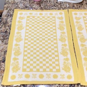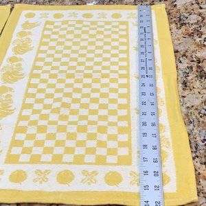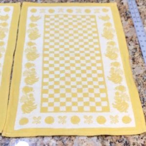 Mid century checkerboard pattern 100% cotton tea towels. Pattern is woven into the fabric and visible on both sides. Cheerful border of fruits & vegetables. In excellent vintage condition. Freshly washed in scent free detergent. Ready to use, display or gift. Carefully packaged to retain cleanliness.