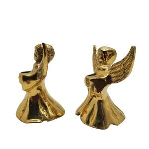 Pair Angel Brass Candleholders Figural Tiny Taper Candlesticks Vintage Holiday