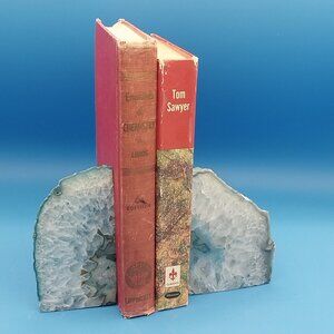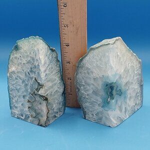 Pair Brazilian Blue Agate Geode Bookends