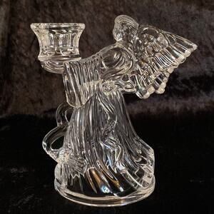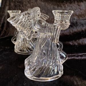 Pair Cherub Angel Candlestick Holders Mikasa Lead Crystal Clear Vintage Decor 2