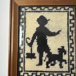 Pair Children Silhouettes Counted Cross Stitch Framed Vintage Boy & Girl