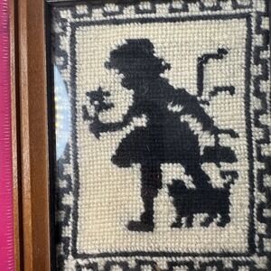 Boy / Dog & Girl / Kitten Silhouette Framed Cross Stitch Pair - Measurements in photos