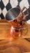 A refined pair of copper mugs featuring warm, rich tones complemented by elegant brass handles. One mug carries an inscription on the front, adding character and a subtle point of interest—please see photos for details. These mugs blend functional charm with thoughtful design, perfect for both serving and display.
