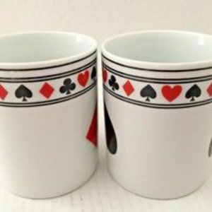 Poker Playing Card Porcelain Drinking Coffee Mugs Tea Cups. Retail $49 now per pair now ONLY $32 per pair as shown in pics.& a FREE "Thank You" Gift!