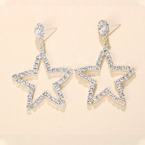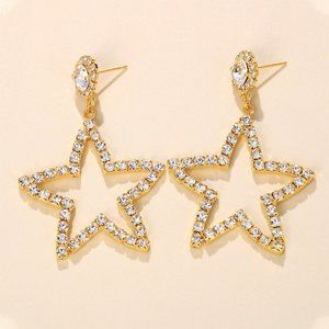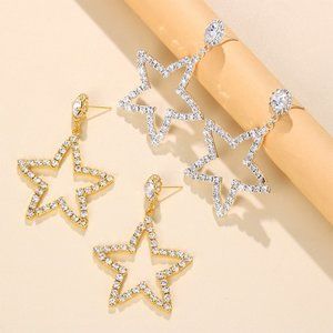 Pair Dangling Big Star Earrings Vintage For Women Piercing Loop Crystal Pendant