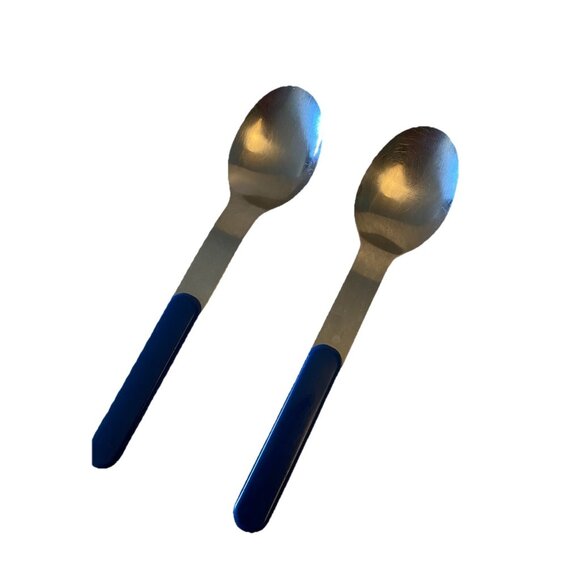 Pair Dansk SUMMERHOUSE Summer House Blue Stainless Flatware 2 Serving Spoons Set