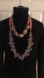 These elegant necklaces features beautiful clear beads strung on salmon pink satin type ribbons. There are no traditional clasps as these necklaces allow you to tie the ribbon together.