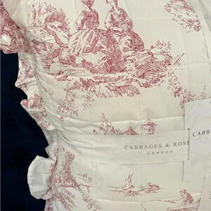 Add some romantic English Shabby Chic to your bedroom with this gorgeous pair of large shams with ruffles. Comes in white and russet reddish color. Made of 100% cotton. 200 thread count percale. Brand new. Comes with inserts filling made of polyester. Made by Cabbages & Roses London