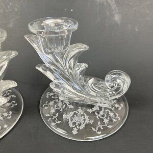 Pair of vintage Fostoria Navarre #327 baroque shape 4" taper candle holders