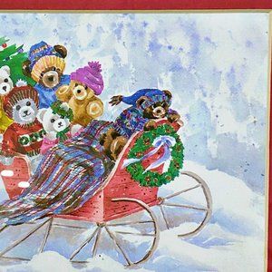 *(1) Christmas Tree & Holiday Teddy Bears Sleigh Riding in the Snow