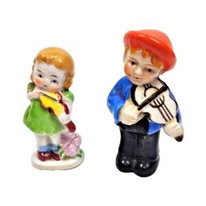 Pair Vintage Mini Porcelain Violin Music Boy & Girl Figurines are in gently used, great vintage condition.