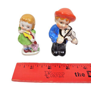 Pair Mini Porcelain Violin Music Boy & Girl Figurines 3" Japan Occupied Painted