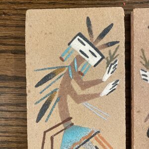 Pair Navajo Sand Art Painting American Southwest Vintage On Wood MCM