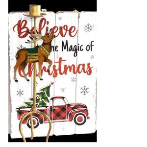 Pair Of Brass Candleholders With Reindeer Christmas Decor