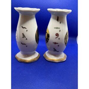 Pair Of Hand-Painted Egyptian-Themed Ceramic Candle Holders by c, in white, perfect for any unisex space, crafted from high-quality ceramic. A Fathi Mahmoud Limoges Egyptian Design