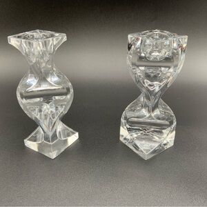 Pair Of Mikasa Platinum Prism Crystal Candleholder 5-3/8"H