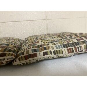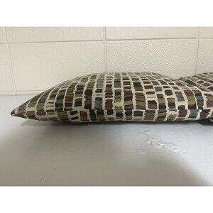 This product is a pair of decorative pillows with a geometric design, featuring a square shape and a multicolor pattern. They are perfect for both women and men, adding a stylish touch to any indoor space with their geometric design. The pillows have a zip closure for easy maintenance, making them a convenient and decorative addition to any home.