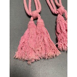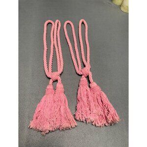 Pair Of Pink Twisted Rope Curtain Tiebacks with Tassels 18" Long Set of 2