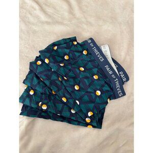 Crafted for comfort, these Pair of Thieves boxer briefs feature a unique geometric pattern. Made from polyester and spandex, they offer a snug fit. Designed in a stylish blue and yellow color palette, they ensure breathability and flexibility throughout the day. Machine washable for easy care. All 5 boxers are included for this post. Seeking in bulk due to not being in original package.