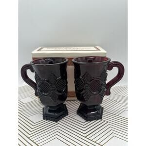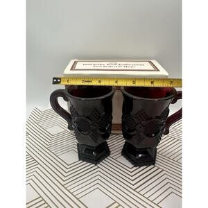 Pair Of Vintage Avon 1876 Cape Code Ruby Red 2 5"T Footed Mugs