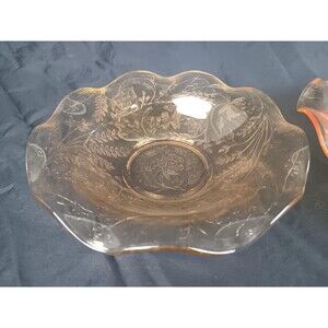 Pair Of Vintage Carnival Glass Bowls by Jeanette Glass Company Floral Patterns