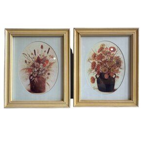 Enhance your space with this pair of vintage floral still life prints. Each print features a unique arrangement in a classic gold frame.