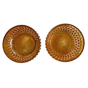Pair Of Vintage MCM Marigold (Carnival) Glass Geometric Diamond Pattern Bowls