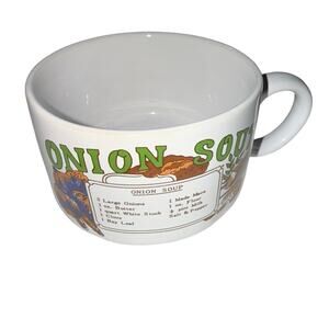 Pair Of Vintage Recipe Soup Bowls Mugs Cups Onion And Chicken Large