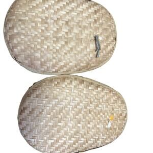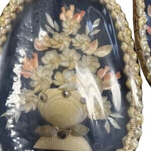 Pair Of Vintage Seashell Floral Wall Hanging Basket Folk Art Tramp Art