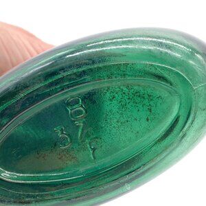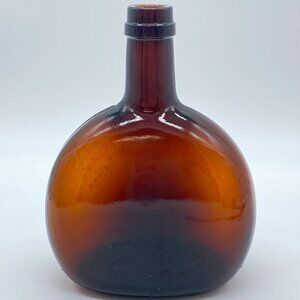 Add a touch of vintage charm to your decor with this pair of Vinol green and amber glass flask-style bottles. Their rounded shape and unique design make them a stylish addition to any collection or home setting.