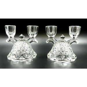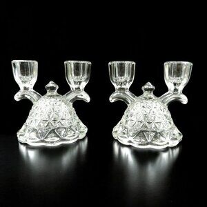 Pair Of Washington Crystal Mt Vernon Depression Double Taper Candlestick Holders