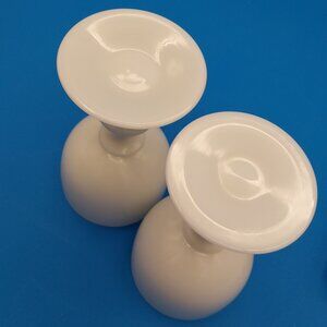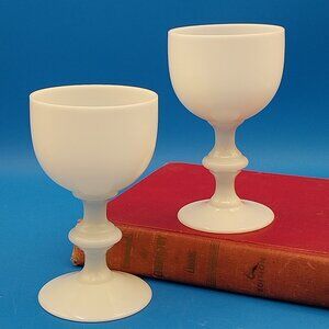 Pair vintage Portieux Vallerysthal white opaline wine glasses. Perfect for weddings, holidays, or just for display