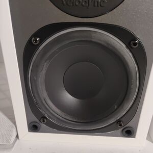 The product is a rare pair of white Velodyne CHT-14WV bookshelf satellite speakers from 2002. These wired speakers are designed to provide high-quality audio performance and are perfect for enhancing your home audio experience. The sleek white color adds a touch of elegance to any room while the Velodyne brand ensures top-notch sound quality. Ideal for those looking to elevate their home audio setup with a unique and stylish addition.
