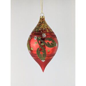 Pair Red and Green Glittery Glass Christmas Ornaments Round Ball Teardrop Felted