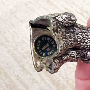 Pair Silver Finish 3in Poodle Afghan Dog Figurine Signed Italy Vintage Ribbon