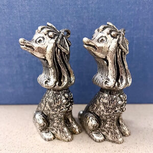 Pair of Silver Finish 3in Poodle Afghan Dog Figurines Wearing Ribbons Bows on their Heads. Adorable!!