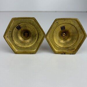 Pair Vintage Brass Hexagonal Base Candle Holders 2.5" Tall Made In India