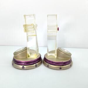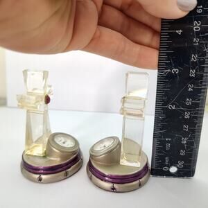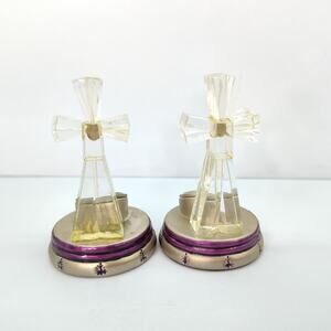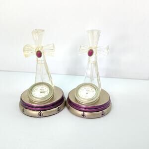 Pair Vintage Elgin Clear with Eggplant Purple accent Cross Clock 3" Miniature Home Decor (NEEDS BATTERY)