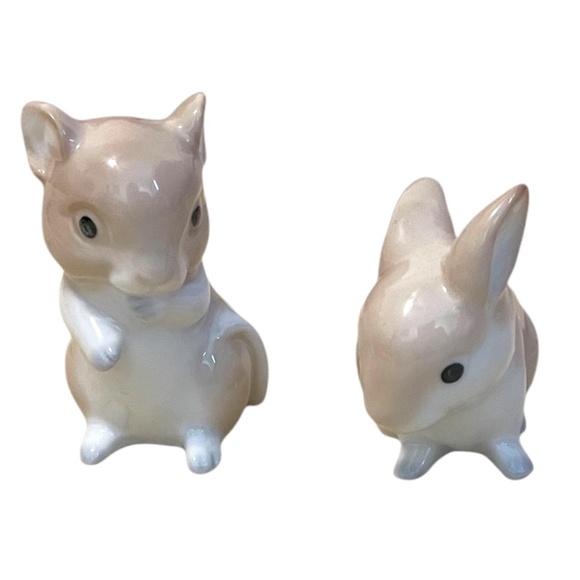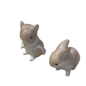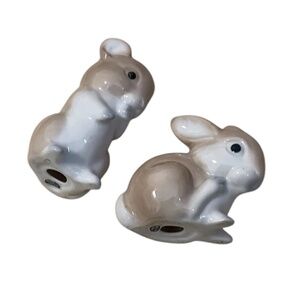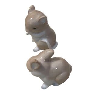 Pair Vintage Rabbit/ Bunny Cream & White Porcelain Figurines, Japan