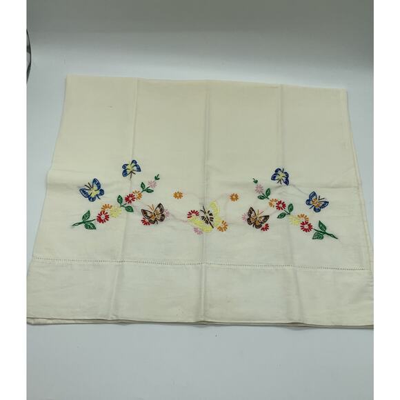 Pair Vntg Handcrafted Embroidery Pillow Cases Butterflies Flowers 18” X 32” Read.