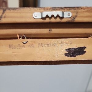 This product is a pair of vintage Mid-Century Modern wood art frames with a linen liner, designed to hold 9x12 and 5x7 art. The frames are rectangle-shaped, multicolor, and feature a deep picture frame style with rear-loading photo insertion. They are suitable for all occasions and can be hung on the wall. The frames are original and date from the late 20th century, reflecting the Mid-Century Modernism theme. Perfect for art lovers looking to add a unique and stylish touch to their gallery wall.