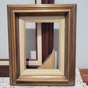 Pair Vtg MCM Wood Art Frames Linen Liner holds 9x12 & 5 x7 no glass Gallery Wall