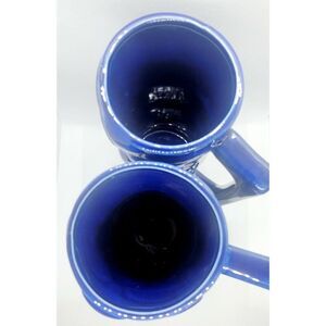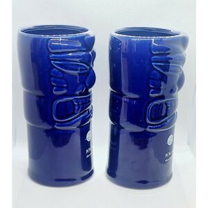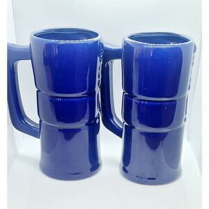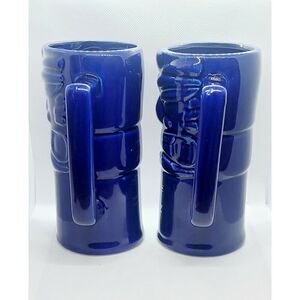 Pair of 2 Vintage Cobalt Blue Tiki Mugs Set With Handles 6" Tall