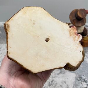 Made to look like carved wood. These are vintage resin figures featuring both a man and woman pilgrim and their fall harvest. Good preowned condition. See all images for full details. Boxy, cubist style much like Pacific Rim products. This is unmarked. Does come up as Ganz on Google lens with similar products,