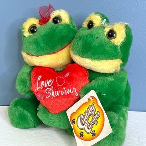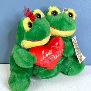 Pair of Adorable Frogs LOVE IS FOR SHARING Heart 8" Plush Stuffed Animal Toys