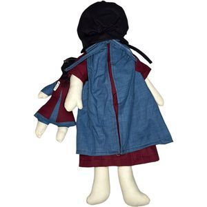Pair of Amish Folk Art Handmade Cloth Dolls Mother & Child, mom is approximately 17 and kid is approximately 7. Faceless besides Eyes Only.