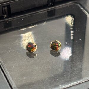 Pair of Anatometal 3mm gold set synthetic black opal threaded end, 14 gauge