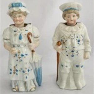 Victorian bisque nodders are a fascinating and sought-after category of collectible figurines from the Victorian era. These delicate figurines were typically made of bisque porcelain, a type of unglazed ceramic that lends a smooth and matte finish to the pieces. What distinguishes nodders is their unique feature: a jointed or spring mechanism that allows the head to bob or nod with movement.