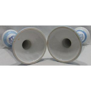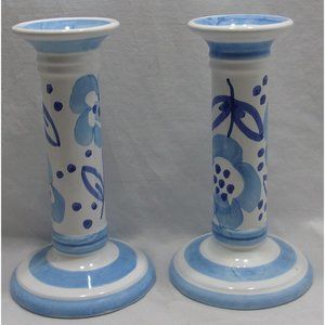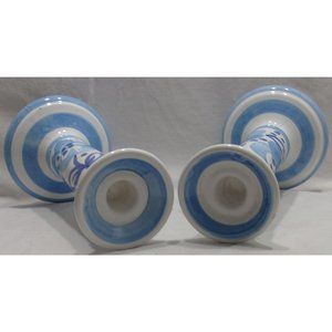 Pair of Bellini Italy Pretty Blue/White Candlesticks Candle Holders 8"