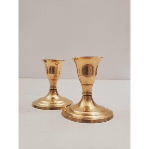 Pair of Brass Candlesticks - 2 Short Candlesticks - Vintage Home Decor - Boho